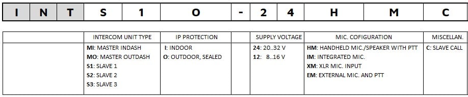 INTERCOM consists of two main units and supporting components. Regarding mounting location, one unit, usually mounted in the cabin, is marked as the “indoor/master unit” and the other one as the “outdoor/slave unit”. Each unit has its own specific supporting components. The indoor/master unit has an integrated microphone, optional external gooseneck microphone and external 15 W speaker. The outdoor/slave unit has an external handheld unit with an integrated microphone and speaker, external 15 W speaker and 1 A output for external ring indication lamp or a buzzer.